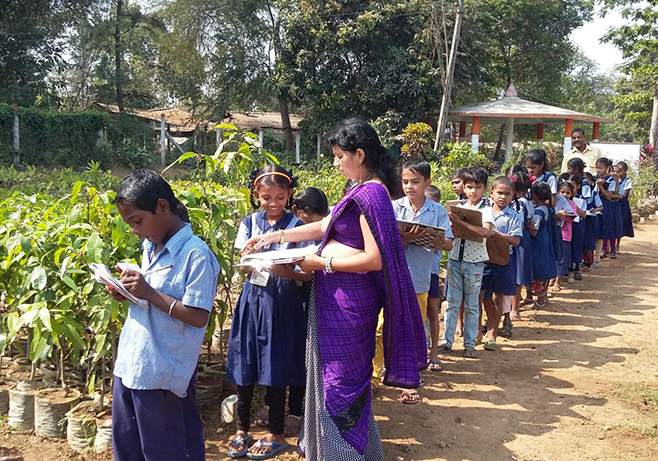 Various initiatives are undertaken throughout the year like exposure visits to agriculture farms and medicinal gardens, planting ornamental and medicinal gardens in schools, movie screenings, and environment based competitions and more. We also celebrate various days like World Forestry Day, World Water Day, World Environment Day, and World Ozone Day with students and the community every year.